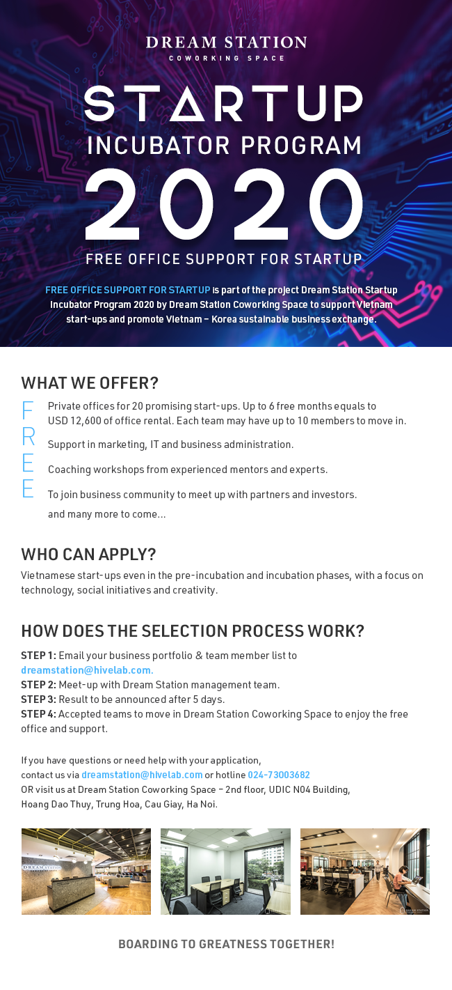 DREAM STATION COWORKING SPACE - INCUBATOR PROGRAM 2020 - FREE OFFICE SUPPORT FOR STARTUP